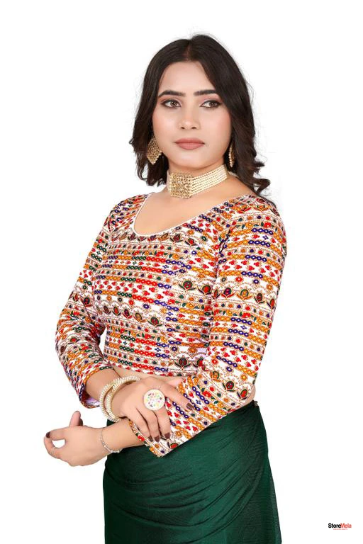 Upgrade your ethnic & fusion wardrobe with the Storemela Aztec Print Embroidered Stretchable Blouse.