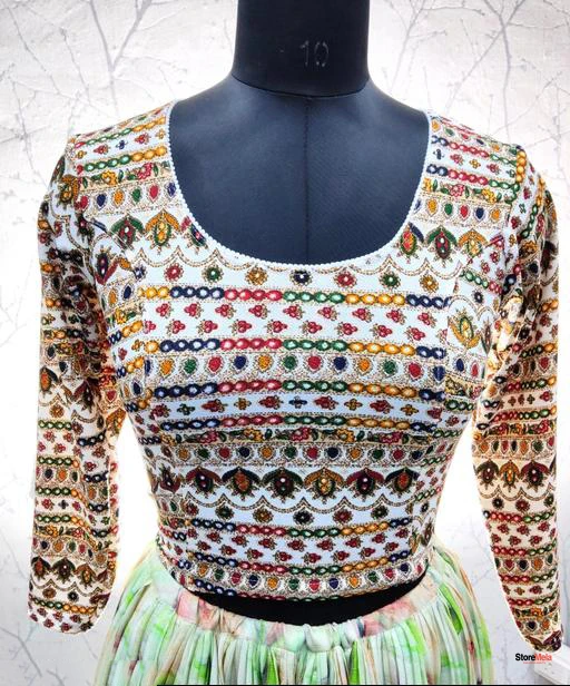 The long sleeves and round neck give a stylish Indo-Western appeal that pairs perfectly with sarees, lehengas, skirts or high-waist pants.