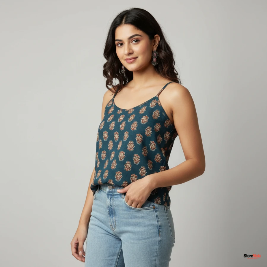 Refresh your summer wardrobe with the Storemela Sleeveless Indigo Printed A-Line Kurti, designed for women who love effortless fusion fashion. Crafted from soft and breathable rayon fabric, this kurti offers lightweight comfort and a flattering A-line silhouette.