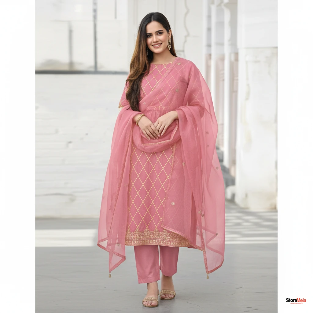 Step into elegance with the Storemela Women’s Rayon Kurti Sharara Set, designed for modern women who love graceful ethnic fashion. This beautiful 3-piece party wear set includes a stylish embroidered A-line kurti, matching sharara bottom, and soft net dupatta in a soothing peach shade.